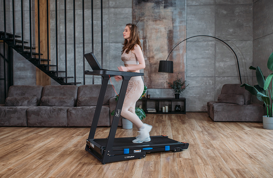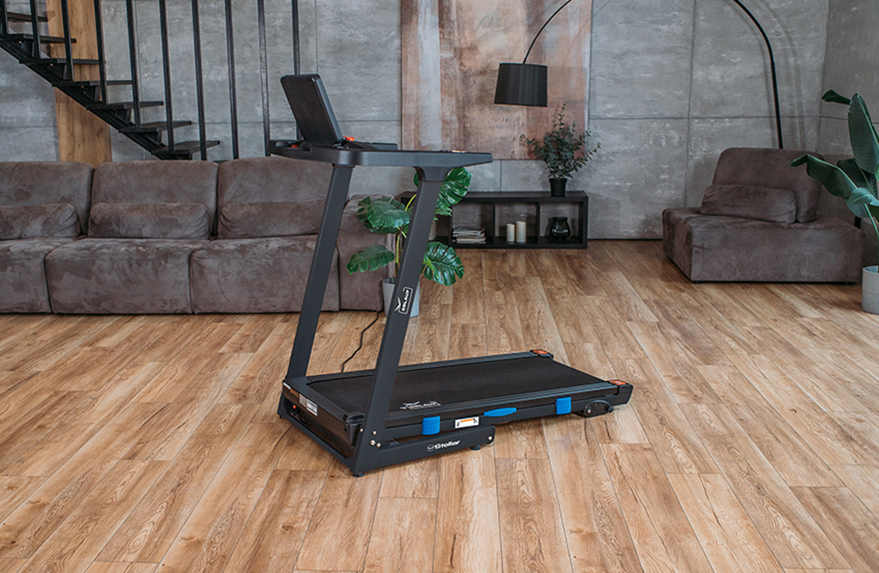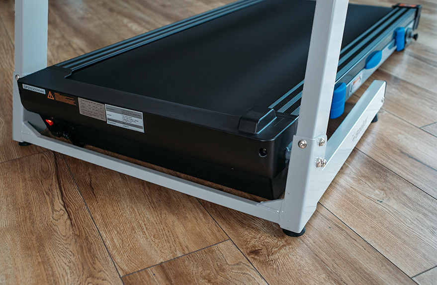Моторный отсек тренажера расположен не как обычно — перед беговым полотном, а под ним. За счет этого удалось значительно сократить длину дорожки, при этом размер бегового полотна не уменьшился. При беге пользователю не придется смотреть под ноги, а также больше нет риска задеть ногой моторный отсек!